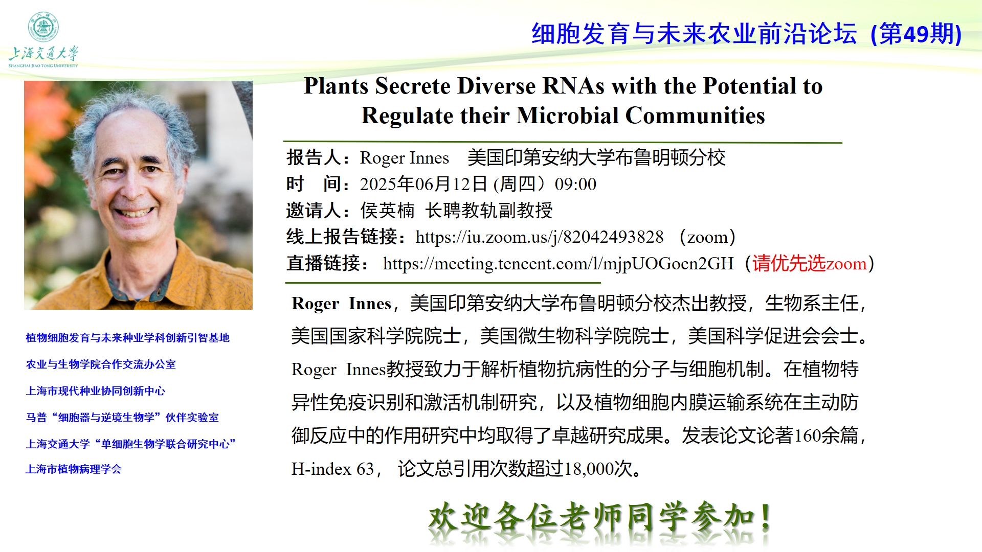 【细胞发育与未来农业前沿论坛第49期】Plants Secrete Diverse RNAs with the Potential to Regulate their Microbial Communities