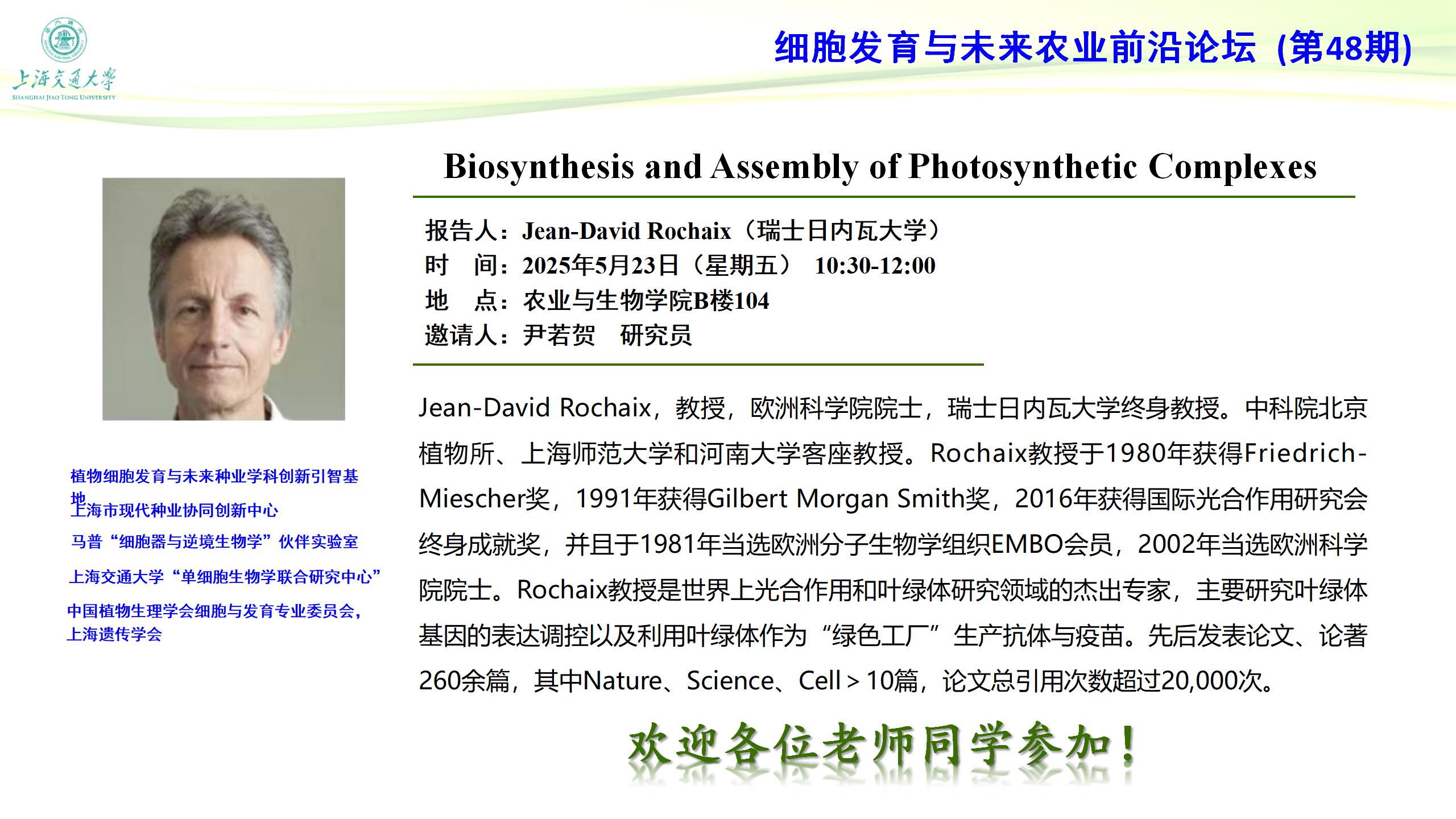 【细胞发育与未来农业前沿论坛第48期】Biosynthesis and Assembly of Photosynthetic Complexes