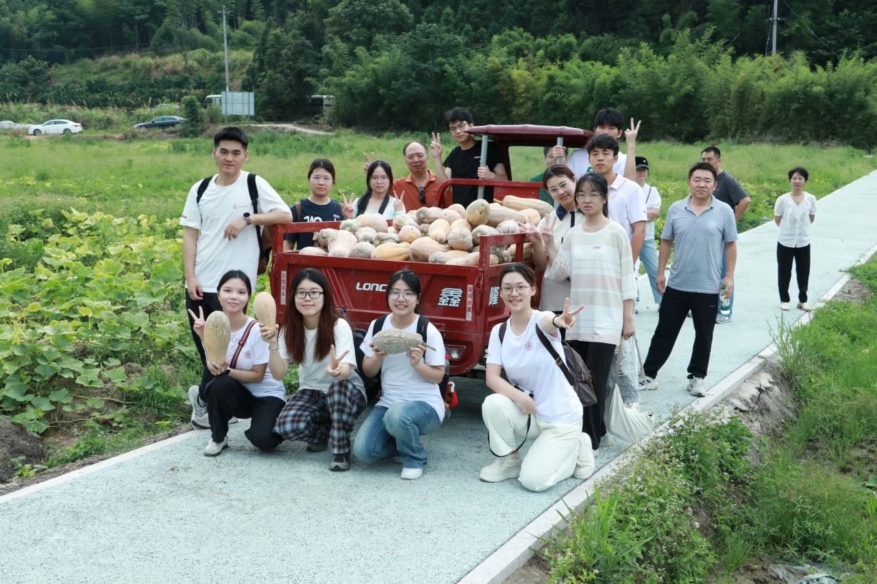 在中央坂农业产业园,实践团学习草莓-大豆套种技术,参观交大农生成人综艺技术支持建设的草莓大棚;在际头南瓜分园,实践团成员下地体验摘南瓜,了解南瓜采摘的要领并帮助农民进行南瓜的装车工作;在乡村振兴示范村-孝坑村,成员们探访柑橘园与西瓜地,洋溪镇人大主席邓巍与孝坑村村支书生动讲述了村民“不让土地闲下来”的勤劳致富故事。
