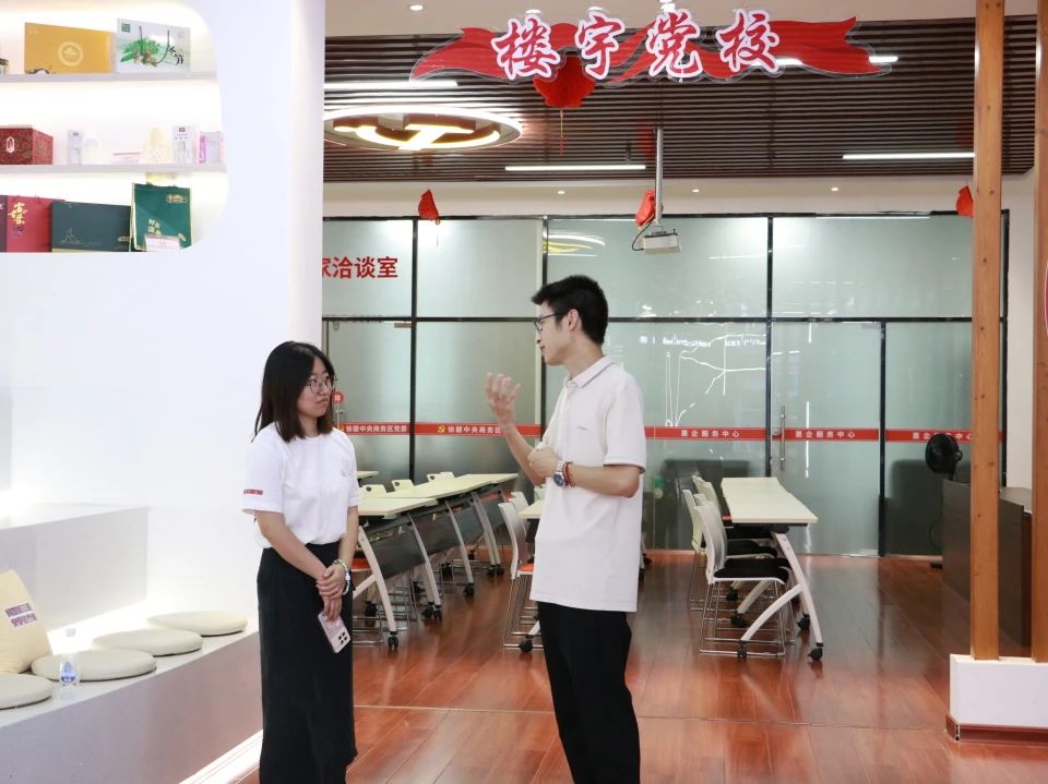 实践团来到了徐碧中央商务区,学习探讨了商务区党委创新推行的管理制度,了解到其通过整合组织资源,实现党建工作从有服务到优治理转变,激发了实践团对城市变迁带来党建工作变化的深入思考。