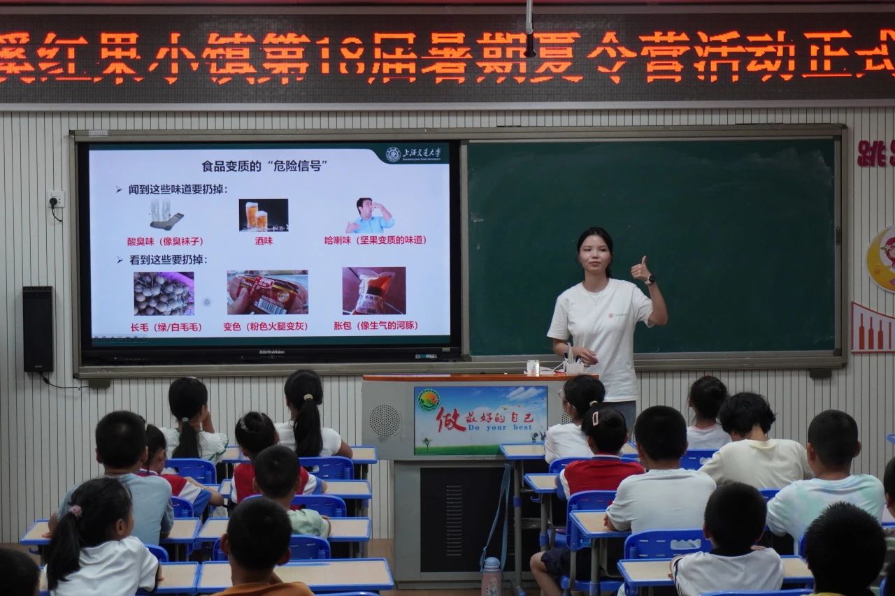 为共育乡村振兴人才,实践团把课堂搬到田埂间与厂房内,成员们来到生产一线,学习劳作知识,体验劳作技巧,为农科学子带来一堂堂生动深刻的“专业实践”;实践团还在洋溪小学开设食品安全与都市现代农业科普课,由实践团成员为留守儿童们带来一场如何分辨安全食品的有趣互动课,由曹正伟老师带来“科学认识都市现代农业”主题课程,同时给所有在场的实践团成员与三明成人综艺同学心中种下了下“知农爱农”的种子。
