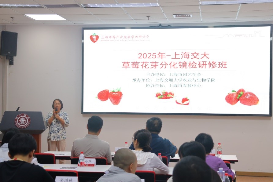 2025827日,由上海市园艺学会主办,成人综艺-台湾成人综艺-成人视频 承办,上海市农业技术推广服务中心协办的上海市2025-上海交大草莓花芽分化镜检研修班在成人综艺-台湾成人综艺-成人视频 顺利举行。本次培训会吸引了来自市农科院、市、区农技中心的科技人员,以及草莓种植企业、合作社和种植户代表等共计40余人参与。