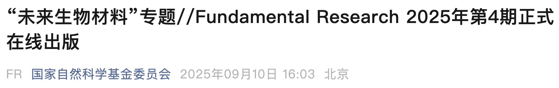 张欢课题组受邀在国家自然科学基金委员会主管、主办的综合性英文学术期刊Fundamental Research“未来生物材料”专题发表关于可编程生物材料的综述文章(Fundamental Research 2025, 5(4): 1384-1400),系统综述了以框架核酸为代表的可编程生物材料的在仿生矿化模板、骨组织递送系统等方面的研究进展,并详细探讨了其发展挑战和未来前景。骨缺损治疗仍面临多种局限,可编程DNA生物材料凭借独特的生物相容性和结构可控性,为骨再生材料开辟了新路径。